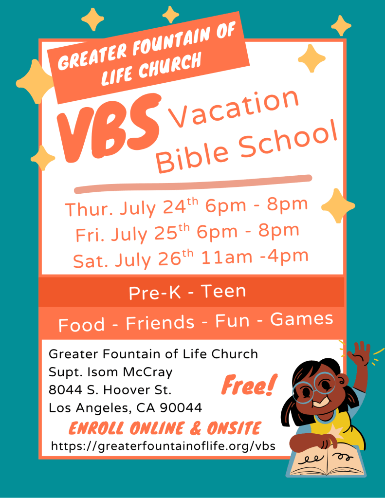 JOIN US FOR VBS – VACATION BIBLE SCHOOL(CLICK PHOTO FOR MORE INFO)